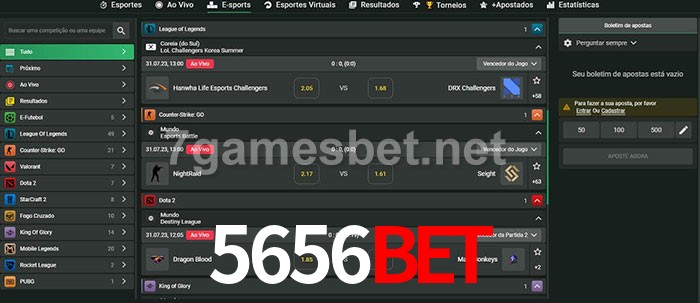 O 5656Bet oferece uma grande seleção de opções de apostas em e-sports com probabilidades competitivas